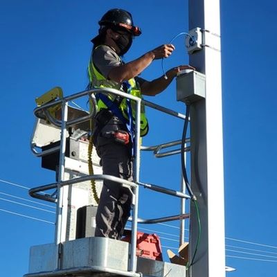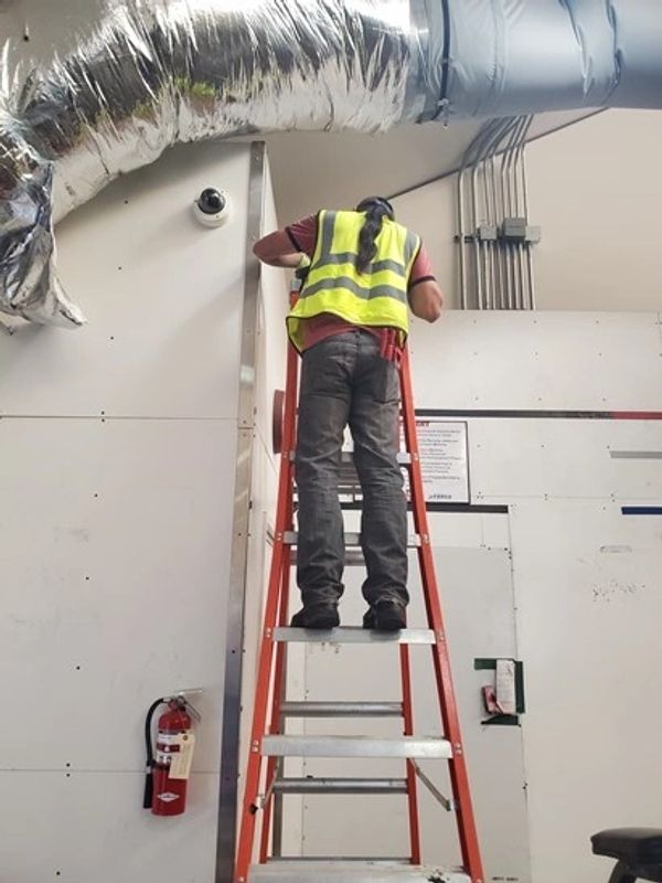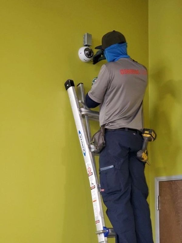 Technician performing Troubleshooting techniques on IP Dome camera on government installation Project